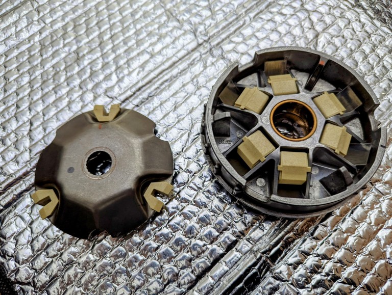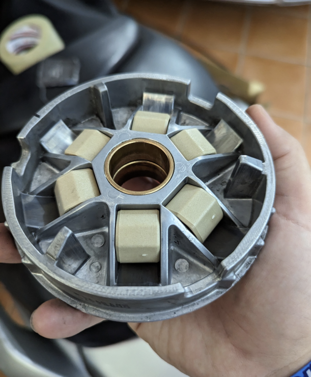 En bajada hasta con unos TechPulley 19x17 de 8g pillas los 117km/h pero luego no pasaba de 111km/h al corte en recta. Ayer le saque los Tech a la moto y de momento la tengo de serie esperando poder bajarle el peso a los rodillos, ya tendrá que ser la semana que viene que me dejen una dremel y unas piedras abrasivas mejores porque ando liadete. De momento solo he podido bajar un Dr a 8g exactos, pero se tarda demasiado. La última lijada concienzuda que le di a los bordes de la tapa del variador ha mejorado mucho la muesca que le hace a los Tech. Se ve rozamiento pero no abrasión como otras veces así que me quedo tranquilo en ese aspecto. Seguimos en contacto compañero.