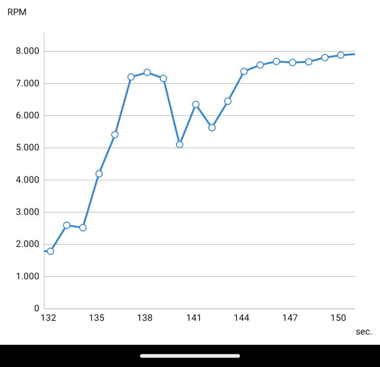 Gracias por la respuesta compañero. La verdad es que no se qué pensar. A mí me fue muy bien durante bastante tiempo con los rodillos TechPulley de 8,5g y las guías TechPulley. Las aceleraciones eran de 7500rpm desde parado y en general genial. Volví a los rodillos de serie porque envié la moto a garantía por diversos problemas y todo era porque necesitaba una actualización. Que por cierto le dio mucha fuerza a la moto. Reinstale los rodillos TechPulley y con la actualización iba como loca la moto a 8250rpm y los vendí, la dejé de serie esperando un día meterle los de 9g para aprovechar esa fuerza extra que fue cuando empecé a escribir en el hilo y ahora la moto aún llevando 8.5g no va igual... Por ejemplo los DrPulley de 8.5g iban bastante bien, sobre las 7500rpm a tope cosa que no me explico por qué los Tech siendo más agresivos van peor. En fin le haré kms y ya está, seguro que deben soltarse porque no tiene explicación. Lo que comentas de las arandelas es algo muy interesante porque le das un comportamiento en parado que con los rodillos es imposible conseguir pero claro del mismo tamaño que el bulón para no dañar la correa no? ACTUALIZO Definitivamente lo de esta moto no lo entiendo 😅 Lleva parada desde ayer y ahora que he salido a hacer unos recados va perfecta. SIN HACER NADA. Os ilustoó porque he conectado la APP para registrar los datos (debía haberlo hecho antes) Aquí tenemos velocidad y revoluciones, ambas gráficas están sincronizadas. Podemos ver que aceleré a tope desde parado y a 40km/h iba a 7350rpm (7 y una raya en el velocímetro). Luego tuve que aflojar un poco por el tráfico y volví a enroscar a tope consiguiendo 7500rpm a 50km/h y unas 7950rpm a 75km/h Esos valores son lo que esperaba de los rodillos TechPulley de 8,5g. Ayer mismo a 50km/h la moto iba a 7000rpm, hoy 7500rpm. No entiendo nada...