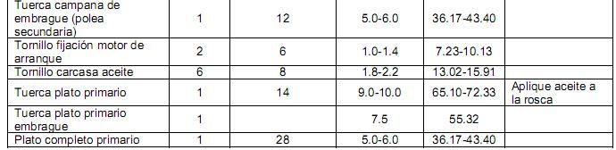 La tuerca grande del centro del embrague (llave de 41mm) lleva un apriete de 5 a 6 Kgfm o de 50 a 60 N/m